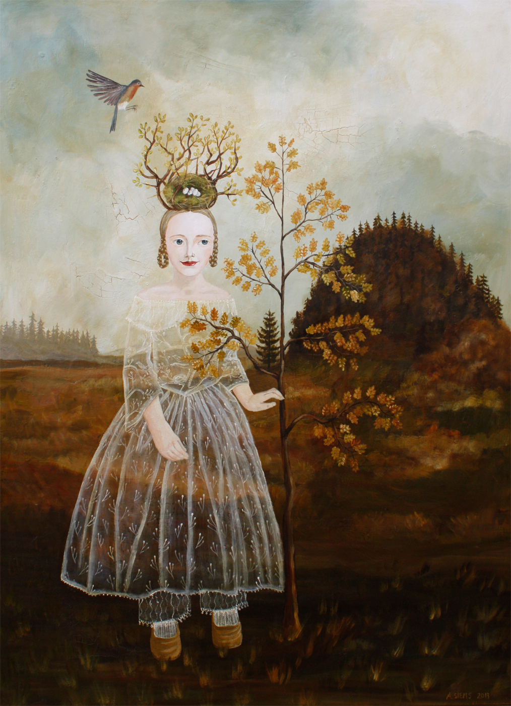 At present, Anne’s work is interested in the human figure and the attributes that surround it. These attributes reflect something about the being without giving a specific narrative. Ideas about life and death, sensuality, sexuality, nature, experiences in the realm of dreams, psyche and spirit are her ongoing topic. A lot of inspiration for these pieces stem from her ongoing love for the art of the European Masters, Early American Folk Art, as well as vintage and modern photography.