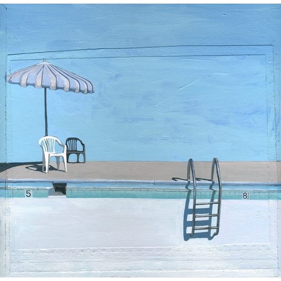 After receiving her BFA from Massachusetts College of Art in 1997, Leah made her living as an interactive designer and art director in Boston for over ten years, painting only periodically. Thanks in great part to the audience she's found through various online art sites, she has been able to paint almost full time since the spring of 2008. Her current body of work falls somewhere between the worlds of photography, painting and collage. She begins her pieces with photographs of seemingly ordinary and mundane scenes, which she then paints directly upon to distill and reveal the visually poignant moments that exist all around us, but are usually overlooked. Despite all the suburban scenes and mid-century modern design in her work, she was actually raised by artists deep in the woods of NH and now lives and works on the top floor of a sunny triple-decker apartment in Boston.