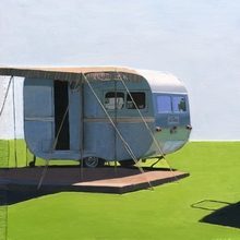 After receiving her BFA from Massachusetts College of Art in 1997, Leah made her living as an interactive designer and art director in Boston for over ten years, painting only periodically. Thanks in great part to the audience she's found through various online art sites, she has been able to paint almost full time since the spring of 2008. Her current body of work falls somewhere between the worlds of photography, painting and collage. She begins her pieces with photographs of seemingly ordinary and mundane scenes, which she then paints directly upon to distill and reveal the visually poignant moments that exist all around us, but are usually overlooked. Despite all the suburban scenes and mid-century modern design in her work, she was actually raised by artists deep in the woods of NH and now lives and works on the top floor of a sunny triple-decker apartment in Boston.
