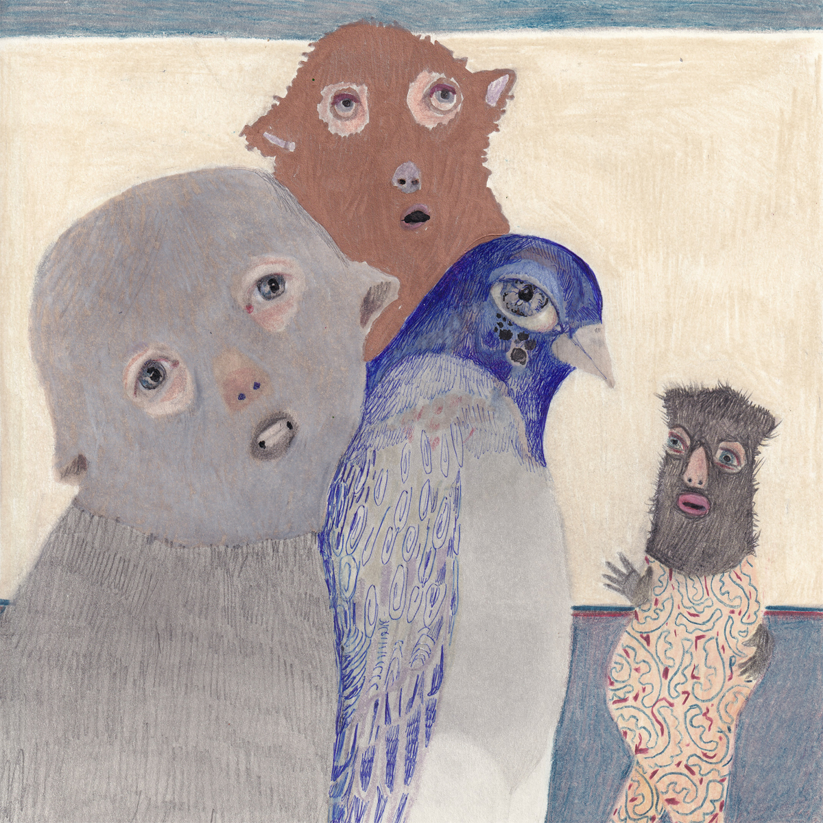 Aris Moore lives and works in Portsmouth, New Hampshire. She can often be found drawing in local coffee shops. Her work explores contradictions of strength and vulnerability, and attraction and repulsion, to create beings that are simultaneously awkward and unbelievable, yet familiar. Her drawings have been exhibited throughout the United States and have been included in several publications including New American Paintings and The Creative Block. When she is not drawing, she is spending time with her nineteen-year-old twins, August and Owen and their very talkative cat Theo.