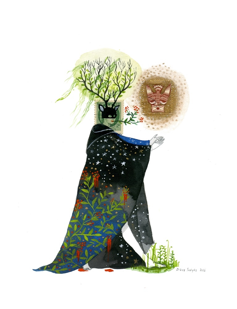 Diana Sudyka lives and works in the Chicago area. She initially worked as a master printer for Chicago artist Tony Fitzpatrick at Big Cat Press, and at Landfall Press for several years, until getting a Masters of Fine Art from Northwestern University. Currently, she works as an illustrator, creating work for everything from book covers, album artwork, screenprinted rock posters, to watercolors for her avian blog, The Tiny Aviary, that documents her volunteer work for the Chicago Field Museum of Natural History. Some bands that she has created concert posters for include: The Decemberists, Feist, Iron and Wine, Andrew Bird, Modest Mouse, Pearl Jam and Tortoise.