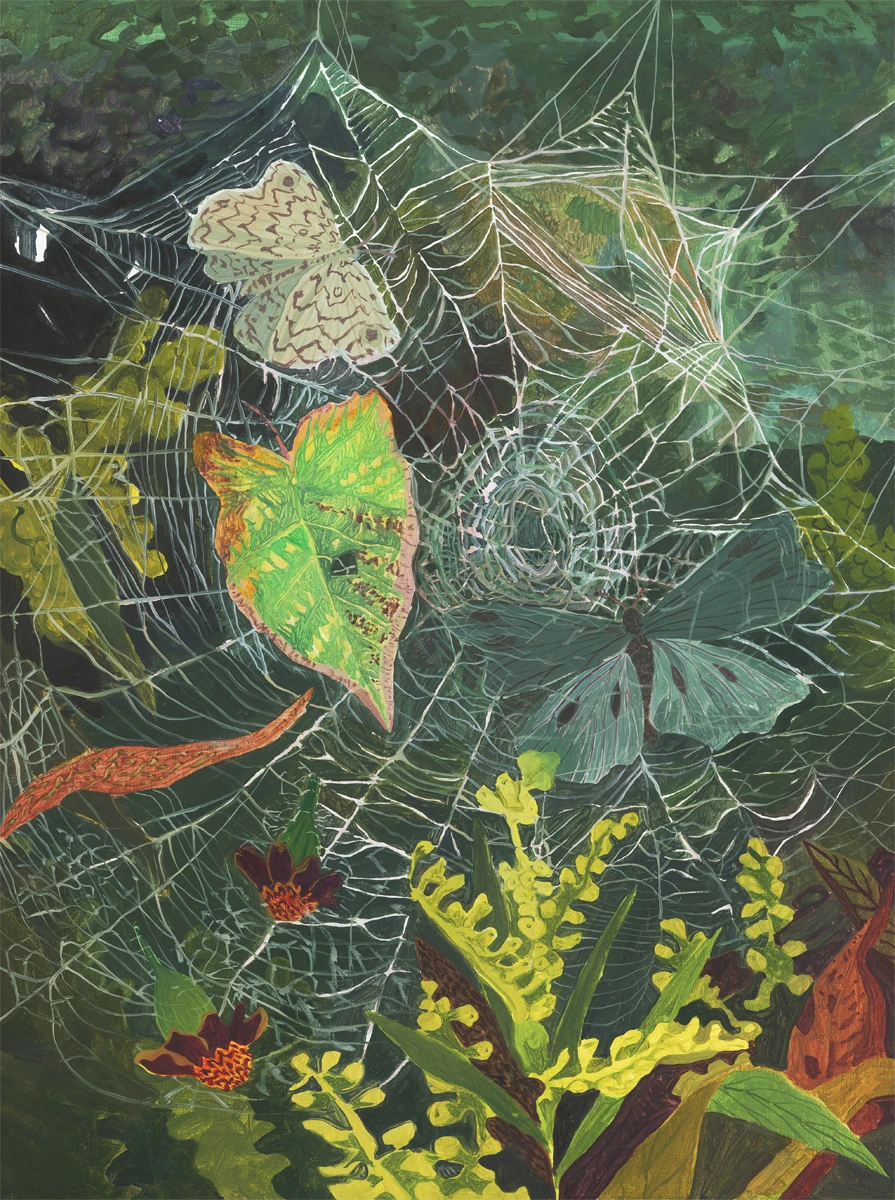 Michelle Morin lives and works in southern Maine. She studied painting and art history at Massachusetts College of Art. Through her work, she seeks out a balance within the complex and mesmerizing layers in nature, honing in on shape, line, and color. She is drawn to the close up wild-tangle contrasted by the softer patterns of distant perspectives in the natural world. Her paintings range from elaborate watercolor and gouache compositions on paper to vast and more layered paintings on panel.