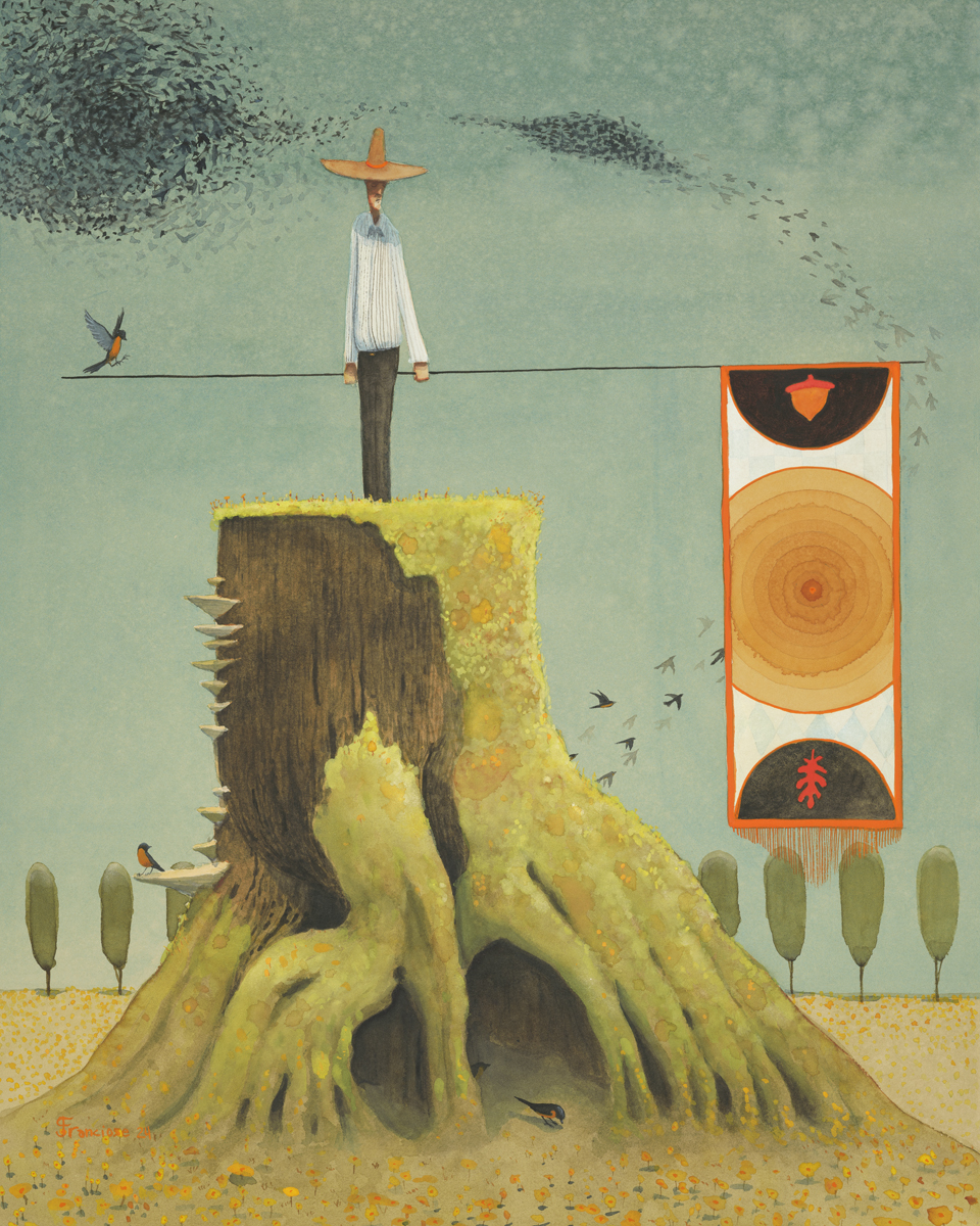 Graham Franciose grew up in the forests of Massachusetts. His work reaches back to those times of exploration and imagination, where anything was possible. His whimsical, sometimes emotional, illustrations show a sliver of a story, a moment between the action, leaving the exact circumstances and narrative up to the viewer. There is sense of familiarity and honesty within his characters and scenes, as well as a sense of mystery and wonder.
