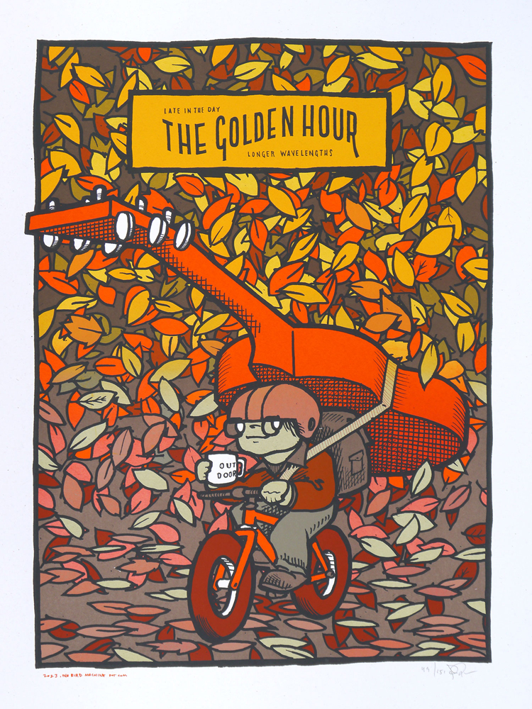 Jay owns and runs his own workshop, The Bird Machine . He began learning to screen print in 1995, working under Steve Walters at Screwball Press. Jay printed posters for his own band (Dianogah), his friends' bands, and the clubs they played at. In 1999, Jay started the Bird Machine print shop in the basement of his apartment building. In 2007, the Bird Machine moved a final time, to a small building in Skokie, a near-north suburb bordering Chicago. Poster Cabaret, as a going business interest, was probably most inspired by the great art of Jay Ryan. Jay has made posters for Modest Mouse, Built to Spill, the Decemberists, and Death Cab for Cutie, to name a few.