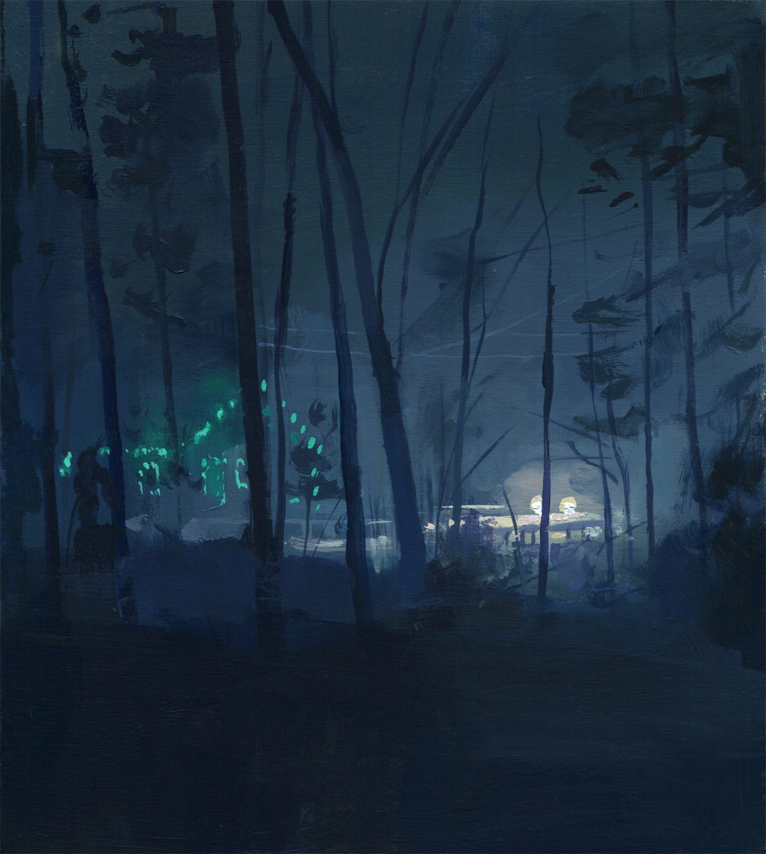 Jeremy Miranda born in 1980 and grew up in Middletown, RI. He graduated in 2004 with a BFA in painting from Massachusetts College of Art. He's interested in painting about memory and the landscape and creating paintings that are complex spatial environments that hover between interior and exterior worlds. He lives and works in Southern Maine with his partner, artist, Michelle Morin.