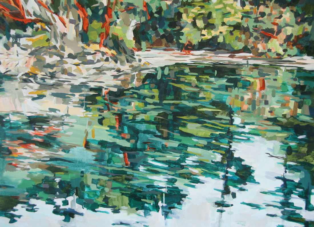 Kelly Johnston (B.1976) earned a BFA in Painting from the University of Washington in 2000. She paints landscapes and abstract landscapes using water soluble oils. Her atmospheric paintings are the result of careful observation of the interaction of color, light and water with a focus on the physical properties of paint. Kelly lives a short ferry ride away from Seattle on Bainbridge Island with her husband and two children.