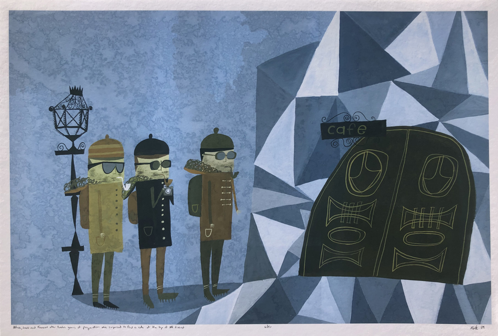 Alfred, Louis, and Francois after 12 years of preparation were surprised to find a cafe at the top of Mt. Everest