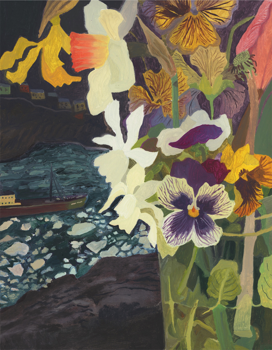 Michelle Morin lives and works in southern Maine. She studied painting and art history at Massachusetts College of Art. Through her work, she seeks out a balance within the complex and mesmerizing layers in nature, honing in on shape, line, and color. She is drawn to the close up wild-tangle contrasted by the softer patterns of distant perspectives in the natural world. Her paintings range from elaborate watercolor and gouache compositions on paper to vast and more layered paintings on panel.