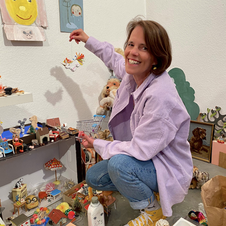 Sabine is a German artist and illustrator. She works in her own studio in Duesseldorf, where she finished her degree at the famous Academy of Fine Arts. When she takes a beach walk, she always comes home with a bag filled with inspiring stuff. She likes to create three dimensional objects made of stranded things. But most of all she works in her studio, where she is surrounded by vintage books, brushes and colors. Sabine creates her own world with its own sense of humor and meaning. Her pictures tell stories, which she has created in her tiny sketch-books and in her stage-like three dimensional scenes. The Bologna Children’s Book Competition selected her illustration works in 2006. Sabine has also shown her work in Duesseldorf, Frankfurt, Berlin, Bologna and Tokyo.