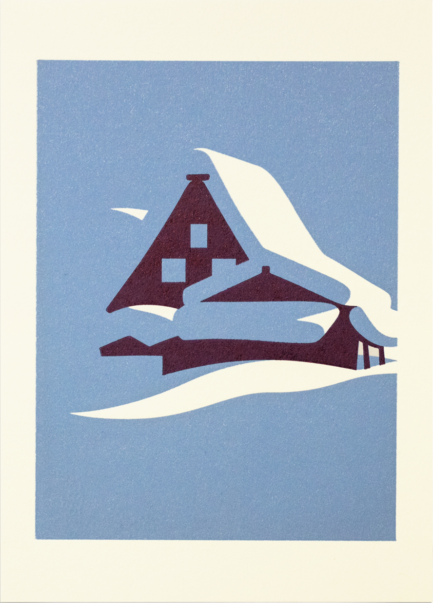 Snow was inspired by the snow laden cabins around ski slopes of Europe and the mountain village of Shirakawa-go in the Japanese “Alps”