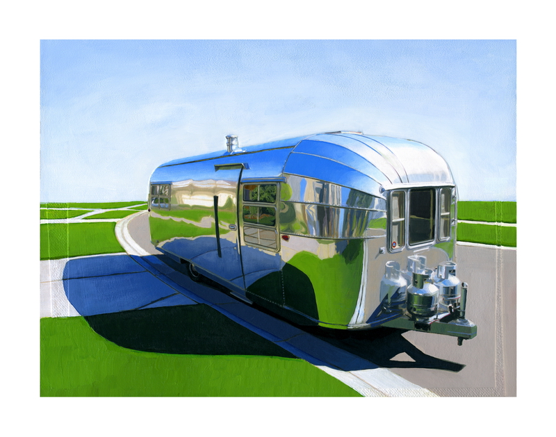 After receiving her BFA from Massachusetts College of Art in 1997, Leah made her living as an interactive designer and art director in Boston for over ten years, painting only periodically. Thanks in great part to the audience she's found through various online art sites, she has been able to paint almost full time since the spring of 2008. Her current body of work falls somewhere between the worlds of photography, painting and collage. She begins her pieces with photographs of seemingly ordinary and mundane scenes, which she then paints directly upon to distill and reveal the visually poignant moments that exist all around us, but are usually overlooked. Despite all the suburban scenes and mid-century modern design in her work, she was actually raised by artists deep in the woods of NH and now lives and works on the top floor of a sunny triple-decker apartment in Boston.