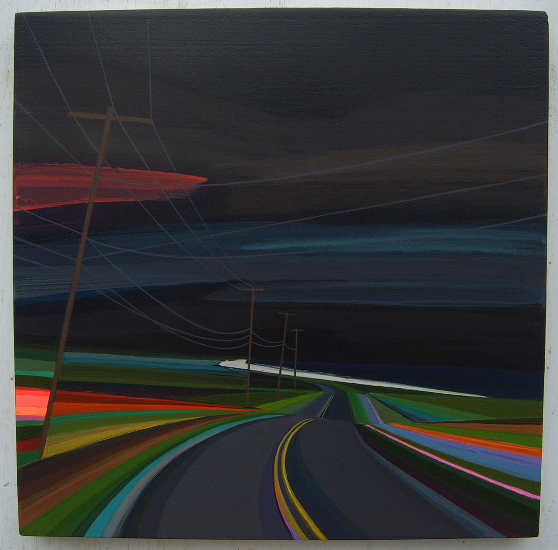 Born in 1978, Grant Haffner has been a resident of the East End of Long Island, New York for most of his life. Haffner’s images are inspired by and reflect the country roads, flat landscapes and surrounding water that we all enjoy. His signature motif of utility poles with power lines creates an original sense of movement and depth to his distinctive, colorful compositions.